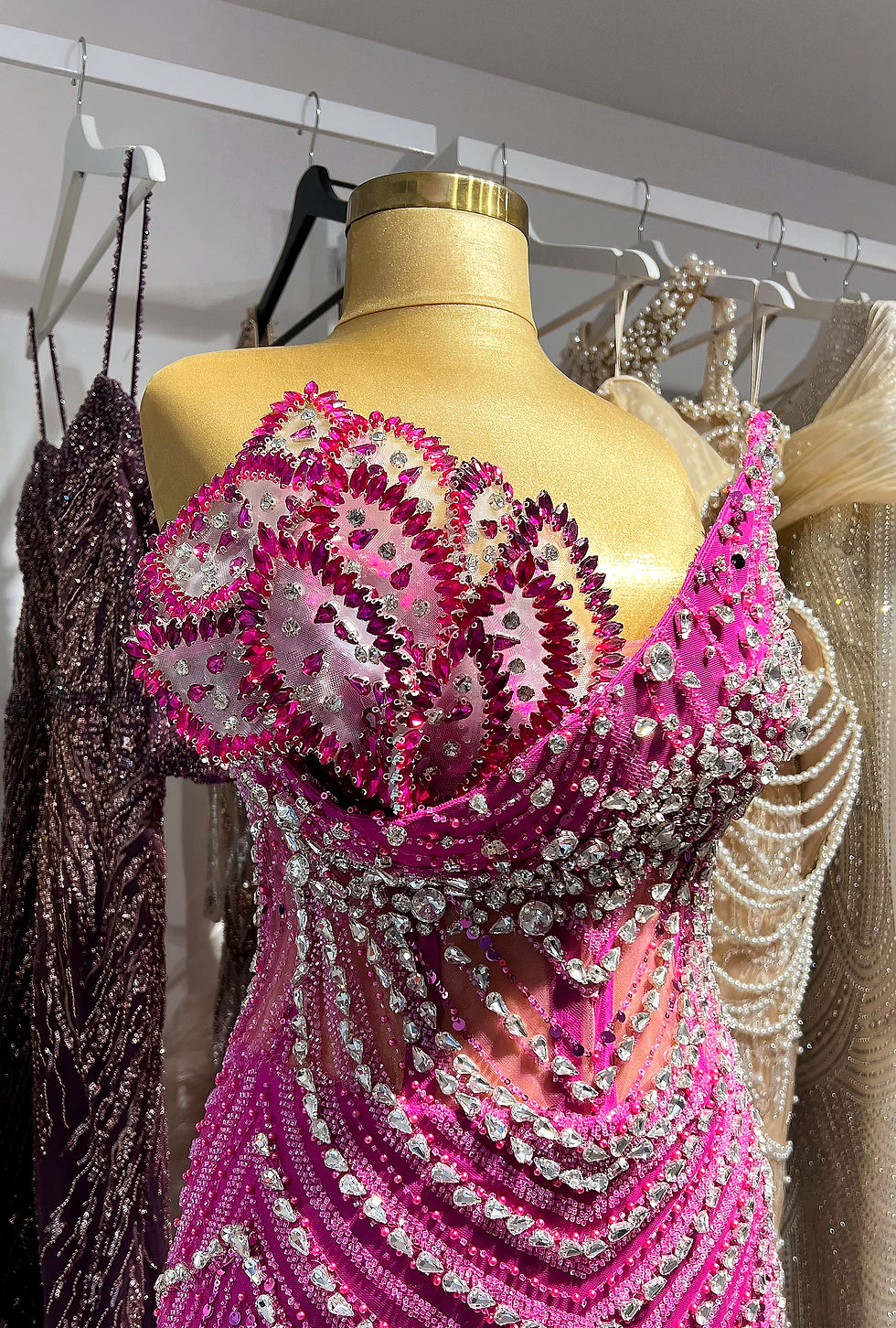 Shine like a true gem in our stunning Diamante Azul women's gala dress. This elegant and sophisticated gown features beautiful blue diamond embellishments, making it perfect for any special occasion. The floor-length design, fitted bodice, and flowing skirt create a flattering and timeless silhouette. The Diamante Azul dress is crafted from high-quality fabric and is sure to make a statement at any gala or formal event. Turn heads and exude confidence in this show-stopping blue diamond dress.